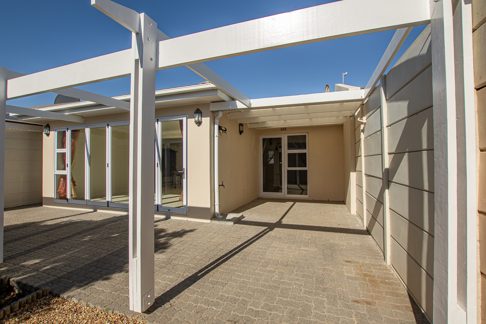 As you enter into this home you have an open plan Dining room and Lounge with stacking doors tat opens up to the patio and the low maintenance garden that is as neat a a pin. The two Bedrooms that has more than enough built in cupboards share a full bathroom that has an extractor fan and